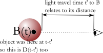 At time t, we see the object at B(t)