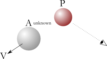While working on a game playing with relativity, I came upon this problem. Typically, this question is reversed: given that I see an object at P that moves a constant velocity V, what is its current position A. And this is very easily answered: P = A + V*t which we solve for A: A = P - V*t where t is the time light took to get to us from P